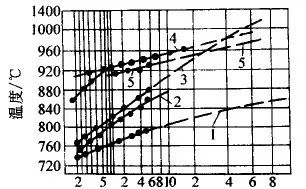 由圖可見,在加熱溫度相同的的條件下加熱速度越高,奧氏體的穩定性就越差。這是由于加熱速度越高,加熱時間越短,形成的奧氏體晶粒越小,且成分不均勻。提高加熱溫度,奧氏體的穩定性將會增加。