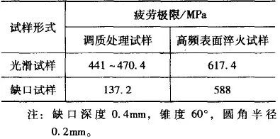 如果工件表面有缺口,采用表面淬火幾乎可以完全消除缺口對疲勞性能的有害影響(見表7)。