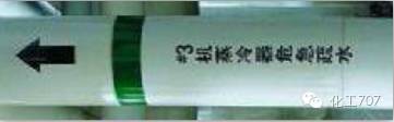 在鋼管管道上以帶箭頭的長方形識別色標牌標識;