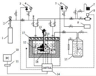 15、自增壓供液氮裝置;16、低溫試驗槽;17、保溫蓋
