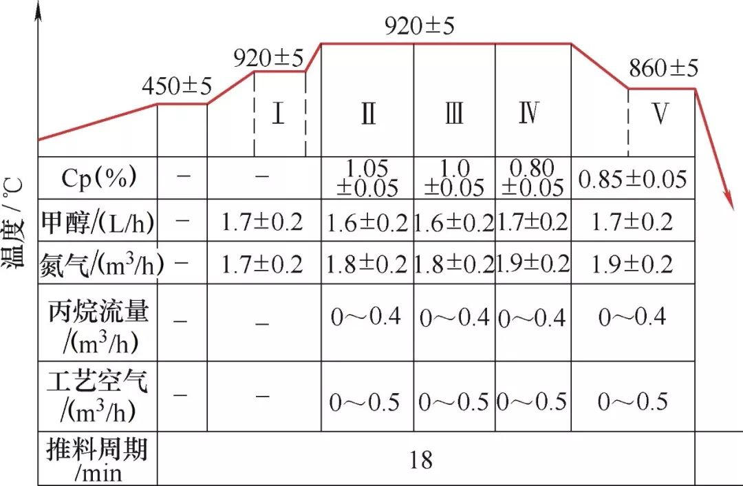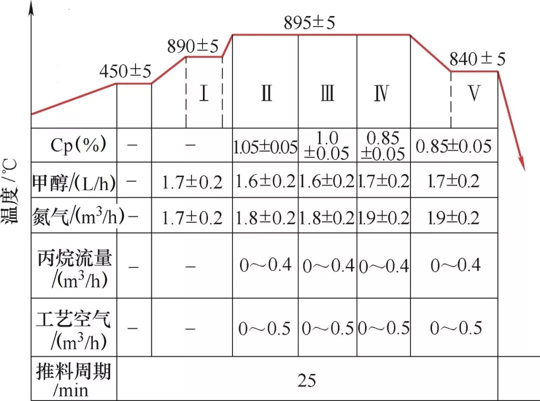 氣氛的改善還可以通過(guò)研究最佳氣氛配比,讓空氣盡可能少通入爐內(nèi),而又能起到調(diào)節(jié)碳勢(shì)平衡,這是個(gè)課題。筆者沒(méi)研究出來(lái),就想了個(gè)簡(jiǎn)單粗暴的辦法,壓縮工藝時(shí)間,這只能算取巧,不能算精進(jìn)。