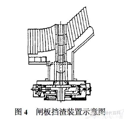 盧森堡、西德、日本在轉爐上用大型鋼包滑動水口擋渣,和一些示渣法相結合,可以有效控制下渣量,并能準確控制出鋼時間。其原理是將類似盛鋼桶滑動水口耐火材料系統移植安裝到轉爐出鋼口部位,通過操作系統以機械或液壓控制的方式開啟或關閉出鋼口,以達到擋渣的目的。這種裝置擋渣效果較好,但其成本較高。同時由于出鋼口所在的特定位置,使得安裝與拆卸均不方便,且易受吹煉期間噴濺的影響。德國G. Bocher 等人的文章介紹了Salzgitter鋼廠210 t 轉爐使用一種在出鋼口末端用液壓閘門的擋渣裝置,見圖4。該裝置由3 部分組成:驅動連接件、帶保護箱的閘門、液壓驅動系統。轉爐裝料時閘門為開啟位置,轉爐到出鋼位置時閘門關上,出鋼前閘門重新開啟,閘門開關僅0. 3 s ,操作安全可靠。與擋渣球相比,鋼包下渣量減少了70 % ,擋渣效果顯著。但該裝置設備復雜、成本較高。