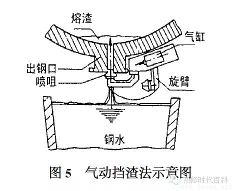 瑞典斯堪的納維亞蘭舍斯鋼公司設計了一種轉動式懸臂木塞擋渣器,可使出鋼帶渣減到最低限度,歐洲許多廠采用該擋渣法。