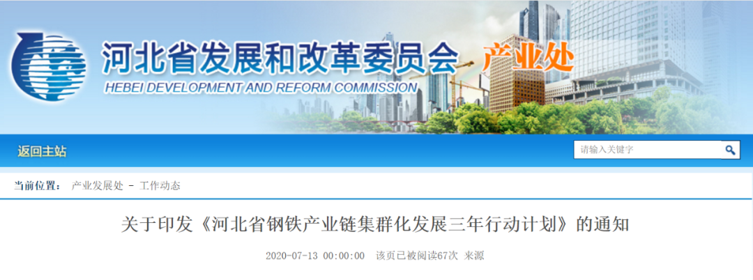 為穩(wěn)步提高鋼鐵產(chǎn)業(yè)鏈供應(yīng)鏈的穩(wěn)定性和競爭力,加快壯大市場前景好、科技含量高、產(chǎn)品關(guān)聯(lián)程度強的產(chǎn)業(yè)鏈集群,全面推動鋼鐵強省建設(shè)。7月13日,河北省發(fā)改委印發(fā)《河北省鋼鐵產(chǎn)業(yè)鏈集群化發(fā)展三年行動計劃》(以下簡稱“《計劃》”)。