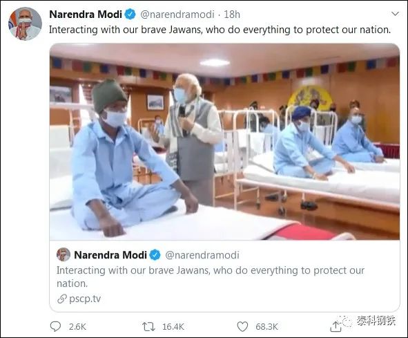 莫迪看望加勒萬(wàn)河谷沖突中受傷的印軍士兵 莫迪推特截圖