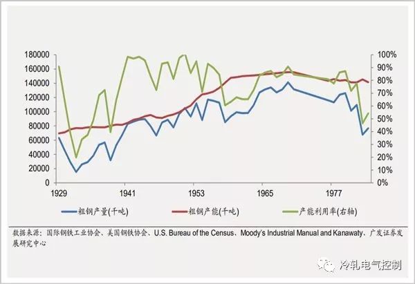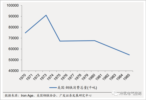 1973年,美國的鋼鐵產量1.36億噸,達到歷史最高值,步入產能過剩階段。