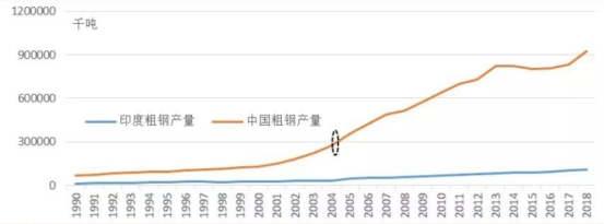 2018年印度成為世界第二大鋼鐵生產國。但是印度粗鋼產能到2031財年才將達到中國2004年左右的水平。