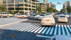 ▲虛擬軌道跟隨控制和車輛防碰撞預警演示