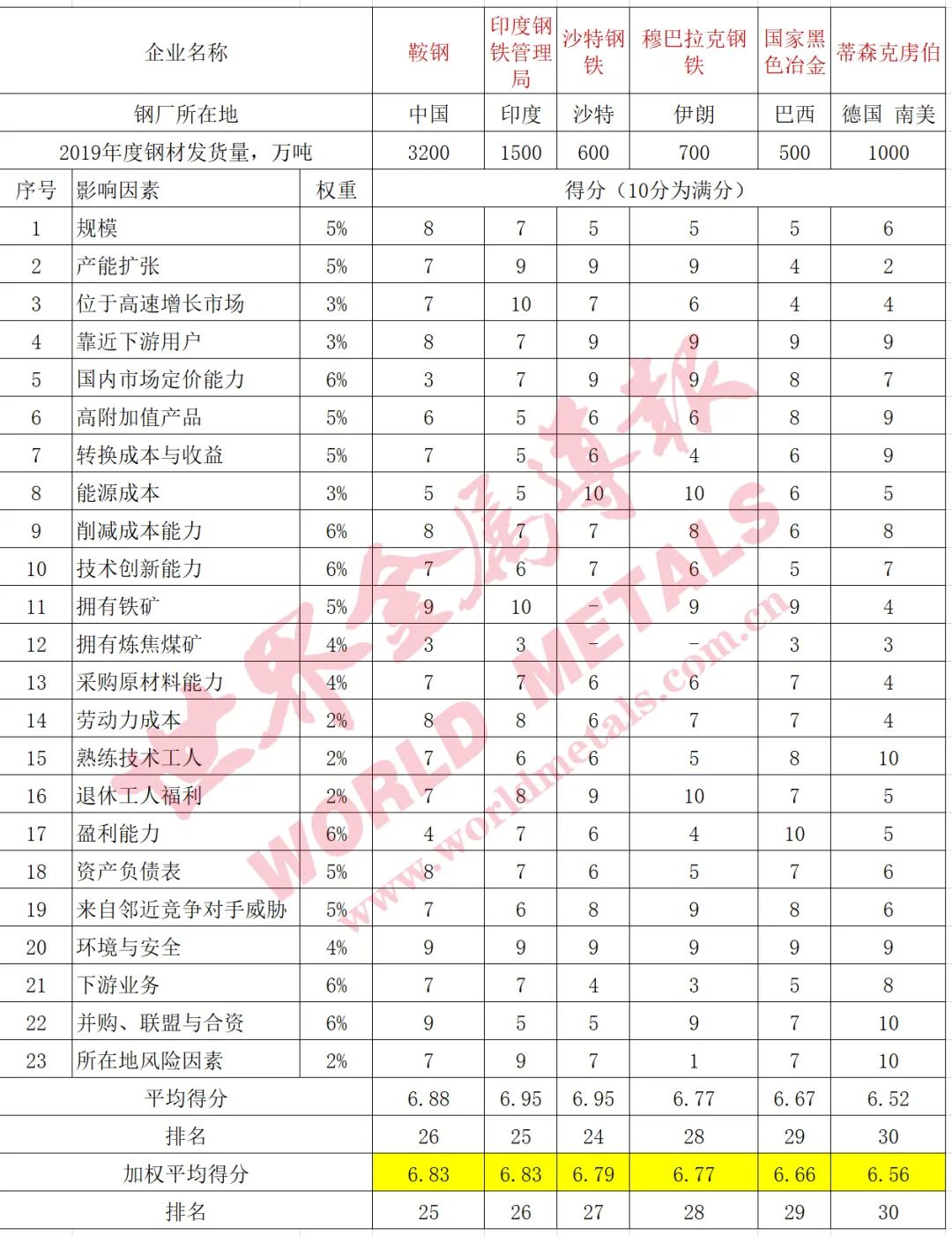 世界級鋼鐵企業競爭力排名
