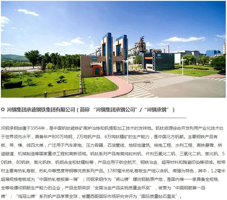 河北鋼鐵集團(tuán)主導(dǎo)產(chǎn)品包括:棒材、線材、型材、熱軋帶鋼、熱軋板、冷軋板、鍍鋅板、彩涂板、寬厚板、焊管、五氧化二釩、釩氮合金、釩鐵合金等系列,幾乎涵蓋市場(chǎng)需要的所有規(guī)格。