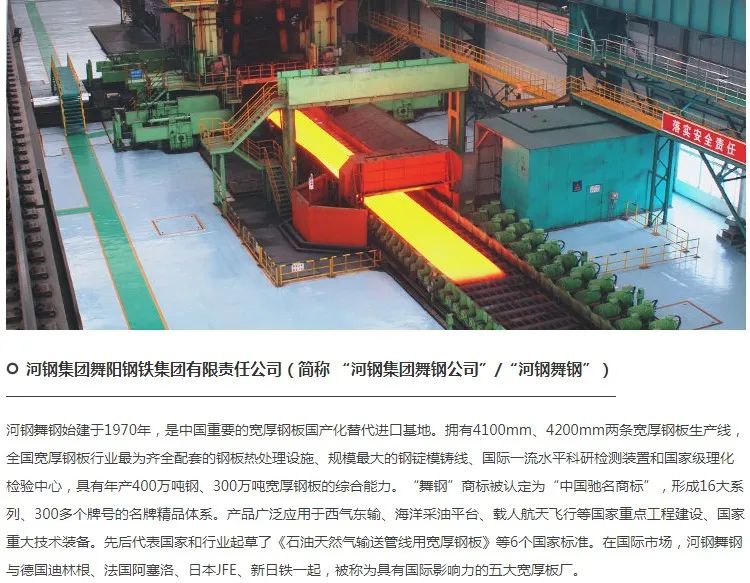 河鋼集團(tuán)組建于2008年6月,旗下鋼鐵子公司大多有著數(shù)十年乃至上百年歷史。河鋼集團(tuán)是由我國(guó)兩大鋼鐵集團(tuán)--唐鋼集團(tuán)、邯鋼集團(tuán)強(qiáng)強(qiáng)聯(lián)合組建而成的國(guó)內(nèi)最大、全球第二的特大型鋼鐵集團(tuán),總資產(chǎn)2638億元,年產(chǎn)鋼4024萬(wàn)噸,截至2019年,河鋼在全球擁有員工近12.7萬(wàn)人,其中海外員工1.3萬(wàn)人,實(shí)現(xiàn)年?duì)I業(yè)收入3547億元,總資產(chǎn)達(dá)4621億元。連續(xù)12年位列世界企業(yè)500強(qiáng),2020年居第218位, 在2020年“中國(guó)企業(yè)500強(qiáng)”、“中國(guó)制造業(yè)企業(yè)500強(qiáng)”、“中國(guó)跨國(guó)公司100大”排行榜中分別位列第59位、第18位和第35位。擁有唐鋼、邯鋼、宣鋼、承鋼、舞鋼、礦業(yè)、石鋼、國(guó)貿(mào)、財(cái)達(dá)、衡板、京唐、宣工、燕山大酒店等13個(gè)控股或參股子公司,銷售總公司、采購(gòu)總公司兩個(gè)分公司和鋼鐵技術(shù)研究總院、戰(zhàn)略研究院,集團(tuán)總部坐落在河北省省會(huì)石家莊。