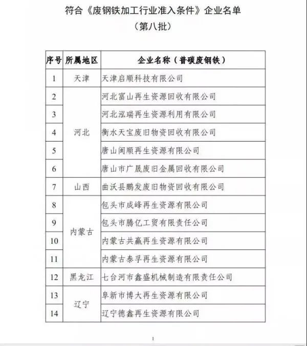 日前,根據(jù)《廢鋼鐵加工行業(yè)準入條件》等規(guī)范條件及相關公告管理辦法規(guī)定,工信部節(jié)能與綜合利用司將擬公告的符合《廢鋼鐵加工行業(yè)準入條件》企業(yè)名單(第八批)公示。此次公示的廢鋼基地準入企業(yè)(普碳廢鋼)共計100家,主要分布于廣東、湖北、山東、福建、江西、江蘇等省份。