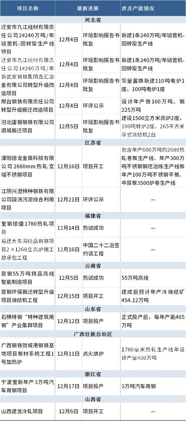 鋼廠鋼鐵項(xiàng)目: 4個(gè)項(xiàng)目批復(fù),3個(gè)項(xiàng)目開工......15個(gè)鋼鐵項(xiàng)目落地