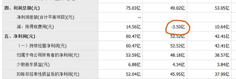 Q4利潤總額49億,應納所得稅大概12億,減去上面的抵扣就變成了-4億左右,算得不夠精準,但是你看看是不是實際是這樣?
