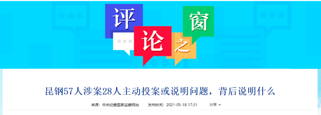 中紀委:昆鋼57人涉案28人主動投案或說明問題,釋放強烈信號