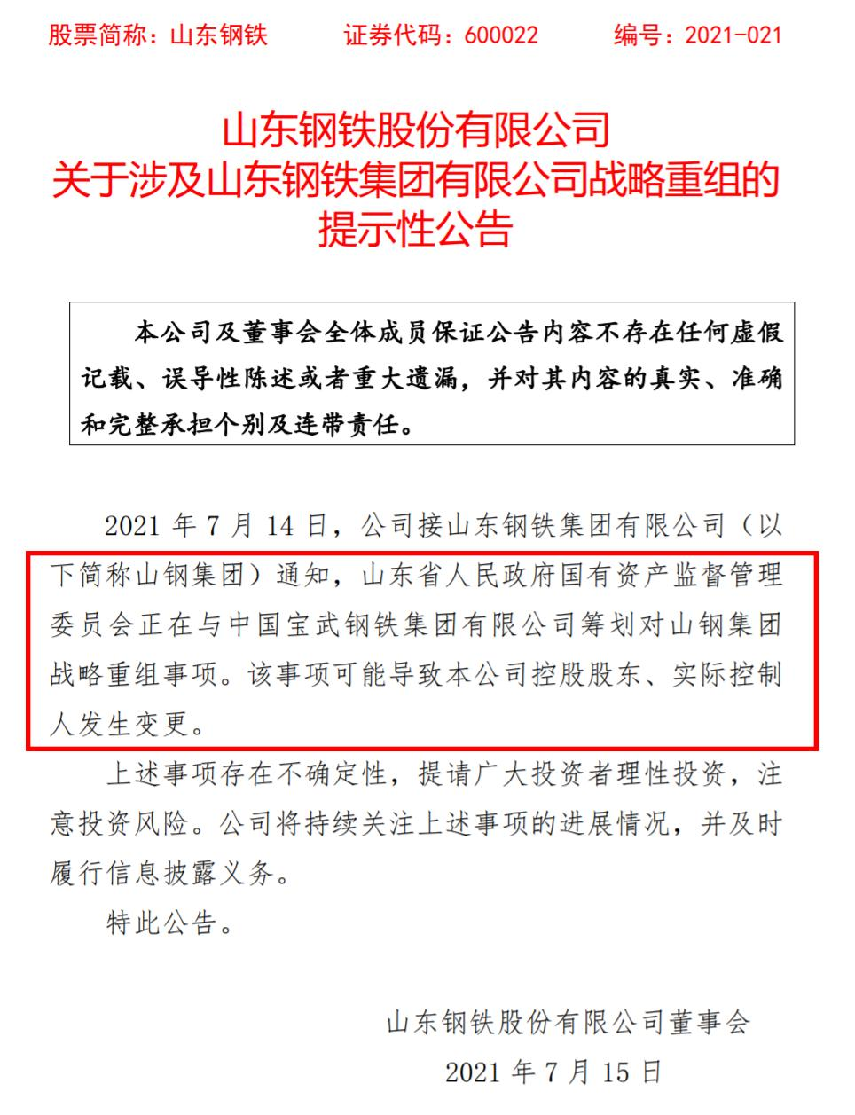 值得注意的是,根據相關數據,2020年,全球粗鋼產量為18.78億噸,其中中國寶武以1.1529億噸的粗鋼產量位居全球第一,而山鋼股份產能為3000萬噸左右。也就是說,一旦完成重組寶武集團的產能將至少達到1.4億噸。