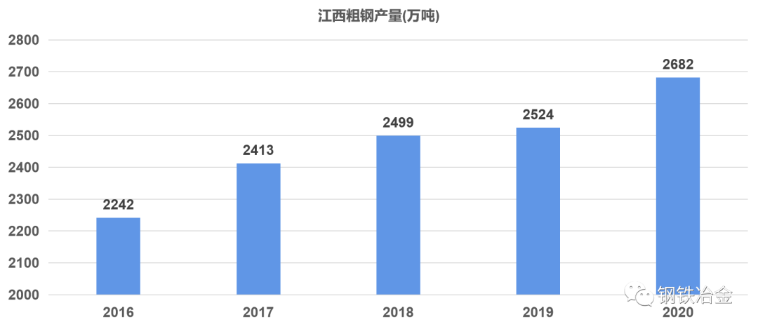 江西的鋼鐵產(chǎn)量這幾年來也是穩(wěn)步上升。
