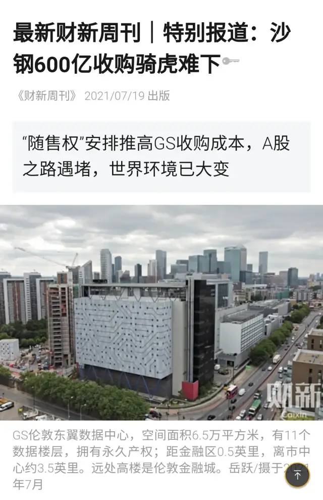 沙鋼的這次并購,真是一場飯局引發的慘案。有些民企主業真的做的不錯,但一多元化就多元惡化。沙鋼當年在天淮鋼鐵項目上的斷臂求生讓人印象深刻,但這次出海收購數據中心真的要呵呵了,被印度阿三坑慘了。并購GS