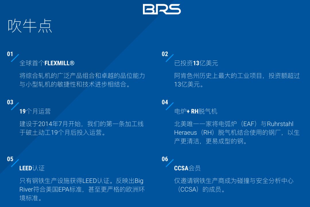 • 第四、產品認可度最高。大河鋼鐵于2014年7月開始建設,第一條生產線于19個月后投入運營。產品一出爐,就成為國際著名的特鋼企業(yè),包括特斯拉、德國寶馬、日本三菱、韓國現代等都是大河特種鋼鐵廠的首批客戶。