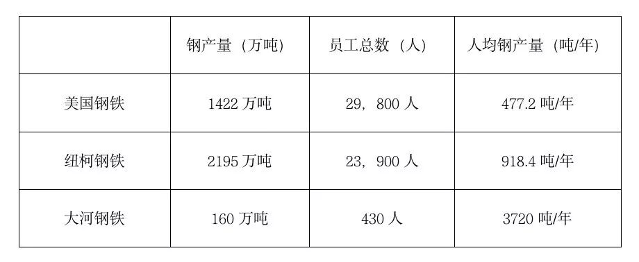 大河鋼廠二期總產量能達到每年330萬噸,總共只需要600多人,人均產鋼量將進一步達到5000噸/年。