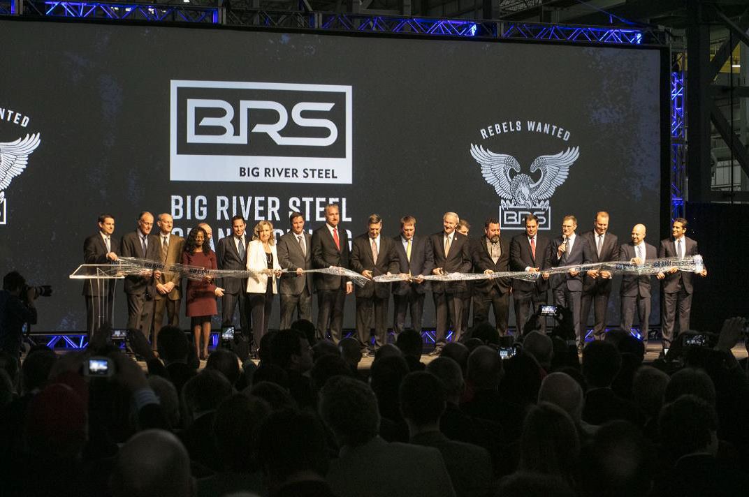 一座巨大的藍色廠房,坐落在毗鄰密西西比河的大豆田(占地1100英畝)上,一排排的每個重約300噸裝滿廢鋼鐵的容器(舊汽車和冰箱的鋼制殘?。┰陔姞t旁等候著。汽笛聲刺耳,震耳欲聾的隆隆聲響起,耀眼的火花從閃閃發(fā)光的鋼包中升起。