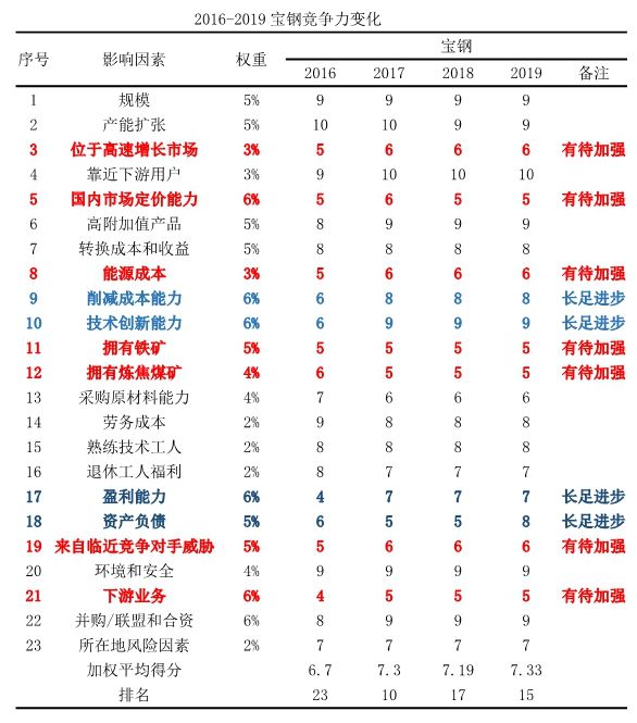 但同時,我們也要看到不足,尤其在定價能力、下游業(yè)務(wù)、原料掌控能力等方面,有國內(nèi)鋼企生產(chǎn)環(huán)境影響,也有自身發(fā)展問題,諸多項得分較低,值得突破補強。