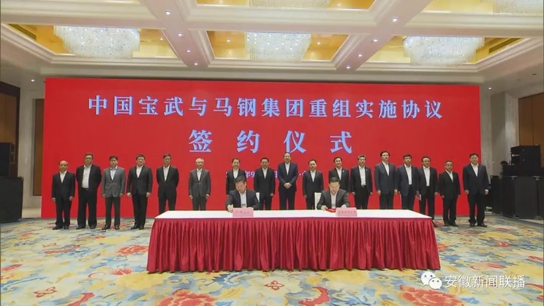 2019年9月19日下午,中國寶武與馬鋼集團重組實施協議簽約儀式在合肥舉行。省委書記、省人大常委會主任李錦斌,國務院國資委黨委書記、主任郝鵬,省委副書記、省長李國英,省委副書記信長星等見證簽約。