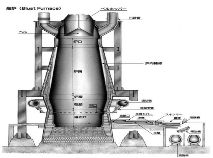 高爐是煉鐵設(shè)備,是鋼鐵冶煉的第一道工序,即鐵礦石須經(jīng)高爐冶煉后才能得到各種類用途的生鐵塊,或供煉鋼使用的鐵水。高爐外殼是鋼板,殼內(nèi)砌耐火磚內(nèi)襯,爐殼和耐火材料之間有冷卻設(shè)備。高爐本體自上而下分為爐喉、爐身、爐腰、爐腹 、爐缸5個(gè)部分。
