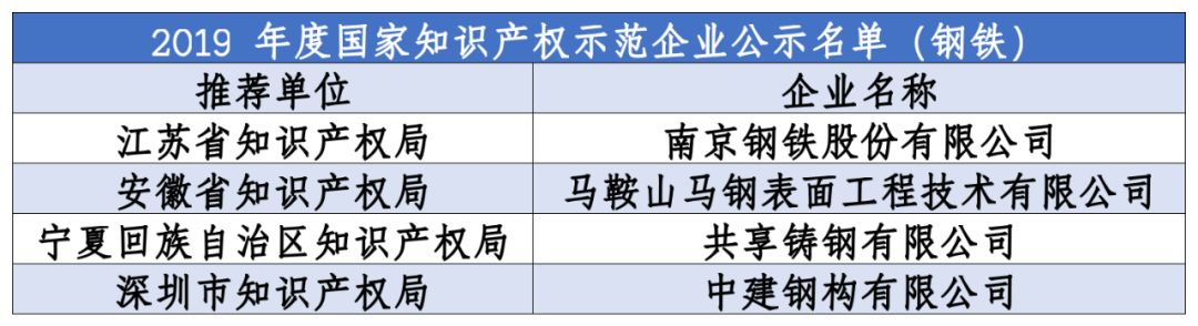 被評為“國家知識產權優勢企業”的鋼企整理如下——