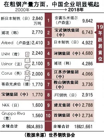寶武鋼鐵集團通過并購國內企業等,超過了在近20年里排在世界第一歐洲安賽樂米塔爾。