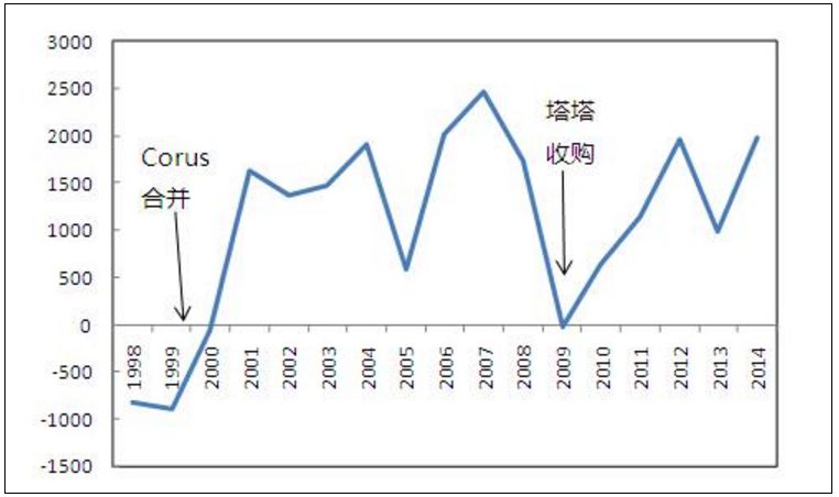 1999年1月歐元區誕生,促進了一批跨國企業兼并重組的進度。1999年10月,英國鋼鐵公司與荷蘭赫高文公司合并(KoninklijkeHoogovens)成立康瑞斯集團(CorusGroupplc),并一度成為世界第四大鋼鐵集團。但好景不長,由于成本較高的原因,康瑞斯公司始終在競爭力上稍顯劣勢,盈利能力難以提高。2007年,康瑞斯最終被塔塔鋼鐵(TATASteel)收購。