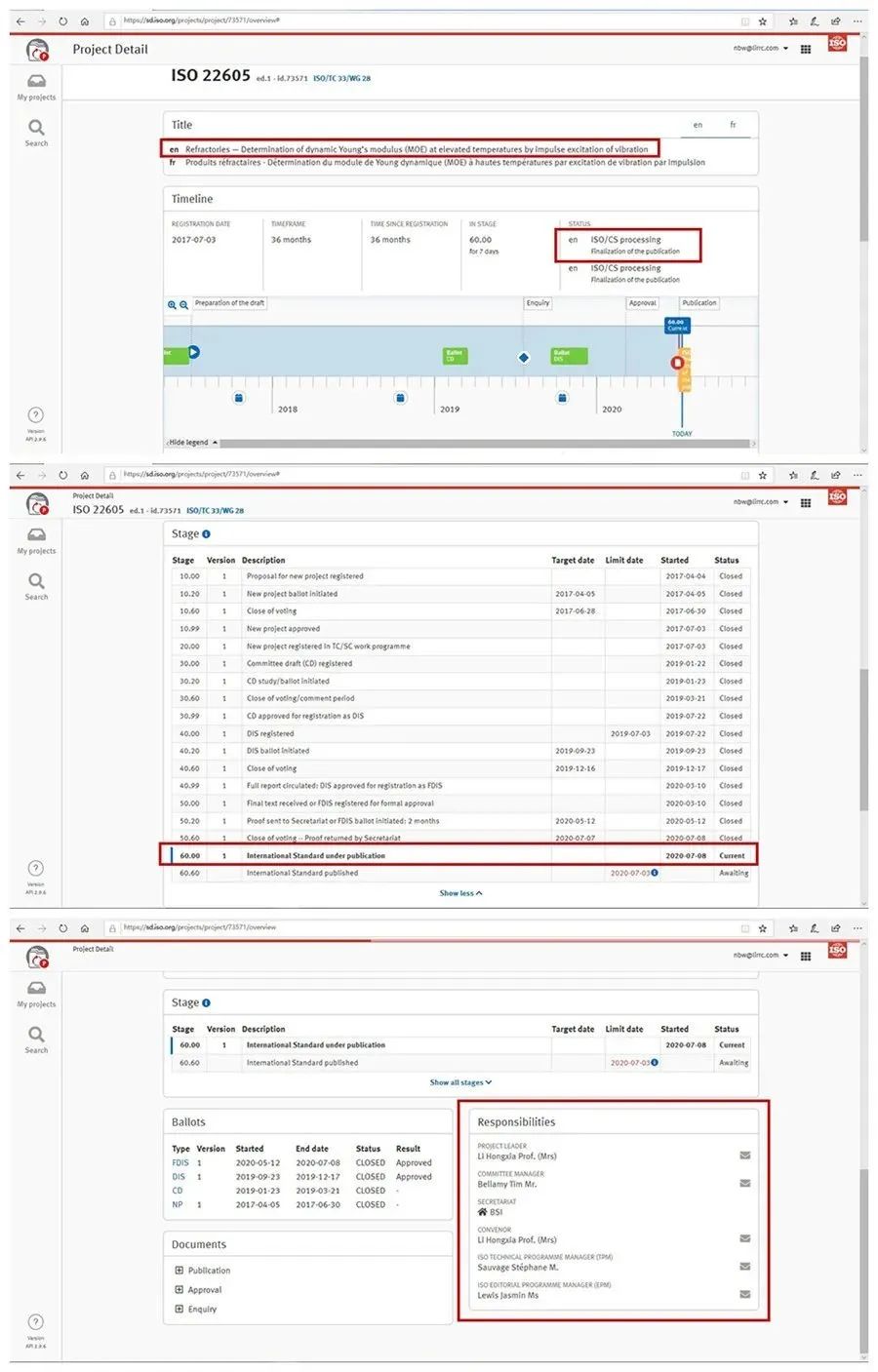 日前,ISO 中央秘書處發(fā)布消息,由我國(guó)主導(dǎo)制定的ISO/FDIS 22605《耐火材料 高溫彈性模量試驗(yàn)方法(脈沖激振法)》正式通過FDIS階段投票,獲得批準(zhǔn)發(fā)布。該國(guó)際標(biāo)準(zhǔn)項(xiàng)目由中鋼洛耐院負(fù)責(zé)制定,項(xiàng)目召集人為中鋼股份總工程師、洛耐院名譽(yù)院長(zhǎng)李紅霞博士,工作組成員來(lái)自中國(guó)、美國(guó)、德國(guó)、日本、英國(guó)等多個(gè)國(guó)家。