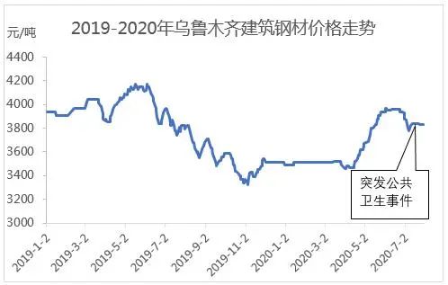 由上圖可以看出,2020年4月烏魯木齊市場正式啟動之后,本地市場建筑鋼材價格表現(xiàn)搶眼,由年內(nèi)最低價3450元/噸上漲至3900元/噸,