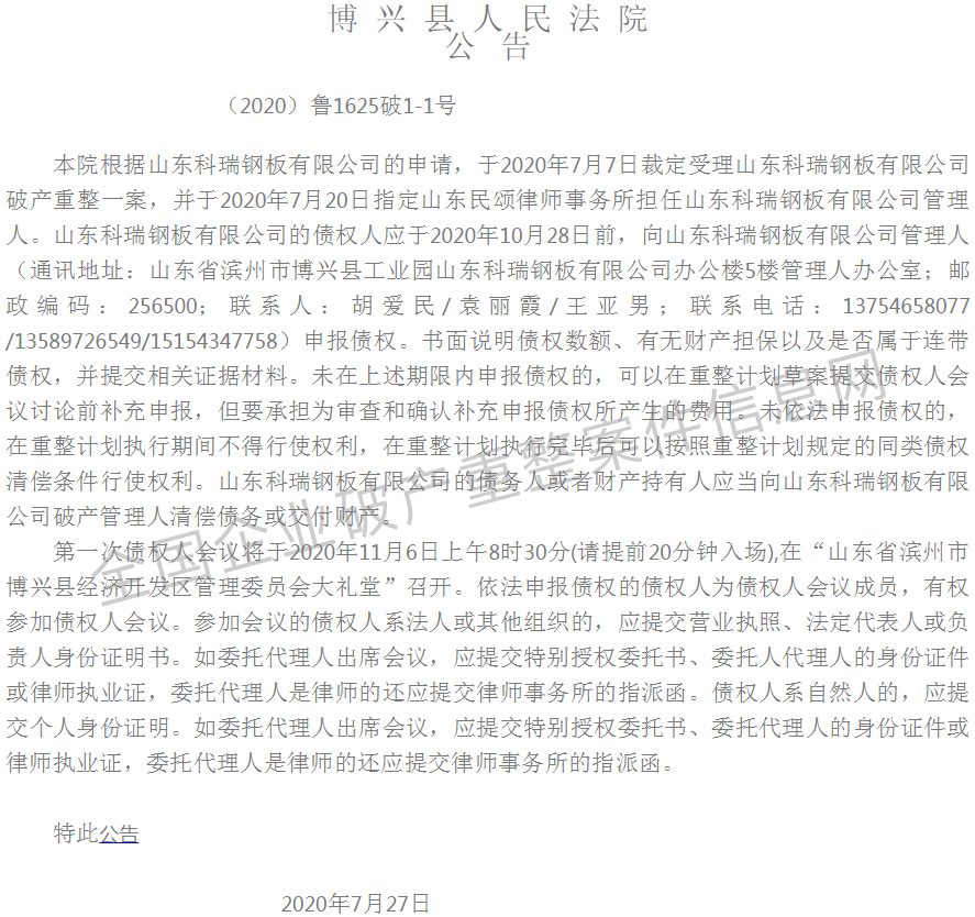 日前,全國企業破產重組案件信息網公布了多家鋼鐵貿易、制品企業破產情況。