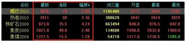 今日期貨再創(chuàng)新高,大幅拉漲。期螺漲78收?qǐng)?bào)3836,期卷漲90收?qǐng)?bào)3911,鐵礦石漲35.5收?qǐng)?bào)873,焦炭漲49收?qǐng)?bào)2021,焦煤漲15.5收?qǐng)?bào)1227.5。