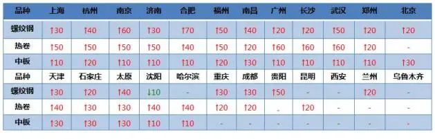 期貨大漲帶動(dòng)現(xiàn)貨普漲,部分城市漲超50,螺紋鋼24個(gè)市場(chǎng)中21個(gè)市場(chǎng)上漲10-70, 20mmHRB400E平均價(jià)格3784元/噸,較上個(gè)交易日上調(diào)28元/噸;