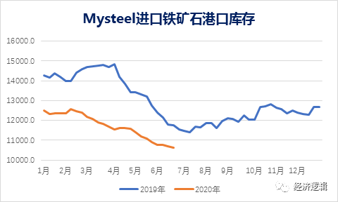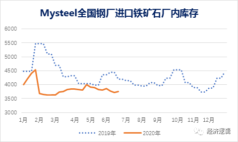 5、鋼廠廠內的進口鐵礦石庫存