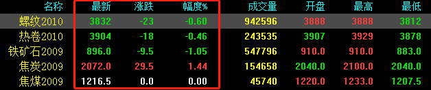 今日期貨高位回落,期螺收出一根大陰線,下跌23收報3832,期卷震蕩,收出一根十字線,下跌18收報3904,原料端有所分化,鐵礦石下跌9.5收報896,焦炭上漲29.5收報2072,焦煤持平收于1216.5。