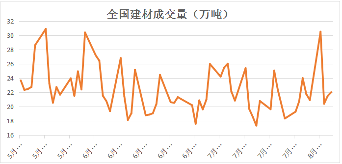 本周建材成交量均值上移,最高達(dá)到30萬噸規(guī)模,最低水平超20萬噸,反映南方出梅之后,需求有所回升,近期市場存在看漲囤貨的現(xiàn)象,說明市場預(yù)期依然偏樂觀。