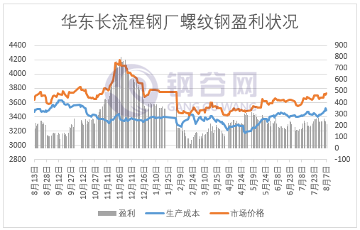 長(zhǎng)流程鋼廠螺紋鋼生產(chǎn)成本及盈利情況
