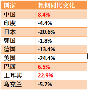 世界鋼協統計,64個國家8月粗鋼產量為1.56億噸,同比增加0.6%,為6個月來首次實現同比正增長,且增產主要來自中國,扣除中國之外的世界粗鋼產量同比減少9.5%。中國8月粗鋼產量達到9480萬噸,同比增加8.4%。
