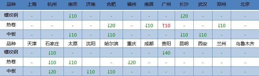 現貨方面,螺紋鋼24個市場中4個市場下跌10-40, 20mmHRB400E平均價格3728元/噸,較上個交易日上調12元/噸。