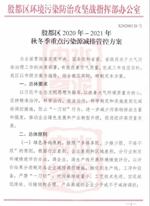 日前,河南省安陽市龍安區發布《2020-2021秋冬季重點污染源減排調控方案》,要求: