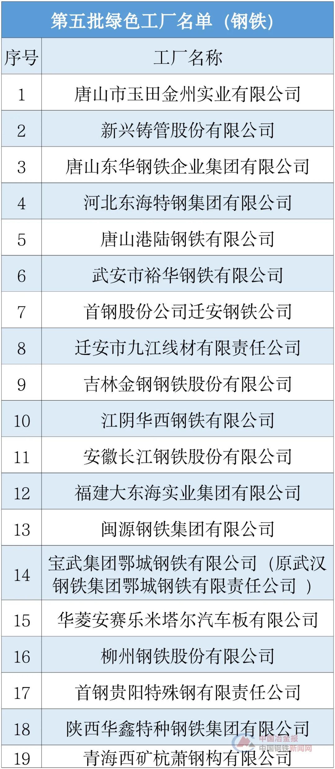 10月29日,工信部公布了第五批綠色工廠名單。據中國冶金報、中國鋼鐵新聞網小編統計,第五批綠色工廠名單中共有鋼鐵企業19家。