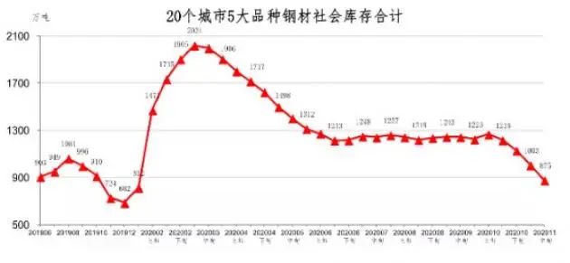 中鋼協(xié)最新數(shù)據(jù)顯示,11月中旬20個城市5大品種鋼材社庫875萬噸,較上一旬減少128萬噸,降幅達(dá)到12.8%,下降幅度呈現(xiàn)擴(kuò)大趨勢。需要持續(xù)關(guān)注11月下旬降庫情況,有放緩的壓力。