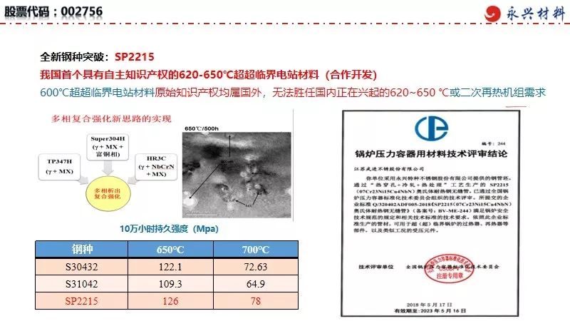 9月24日,工信部公開征集對《重點新材料首批次應用示范指導目錄(2019年版)》(征求意見稿)的意見,由永興特種材料科技股份有限公司聯合北京科技大學、江蘇武進不銹股份有限公司等單位聯合開發的SP2215奧氏體耐熱不銹鋼入選“先進鋼鐵材料”。