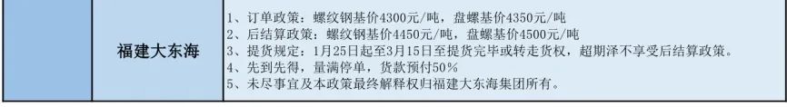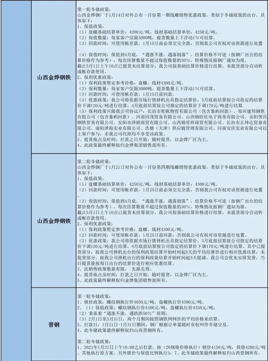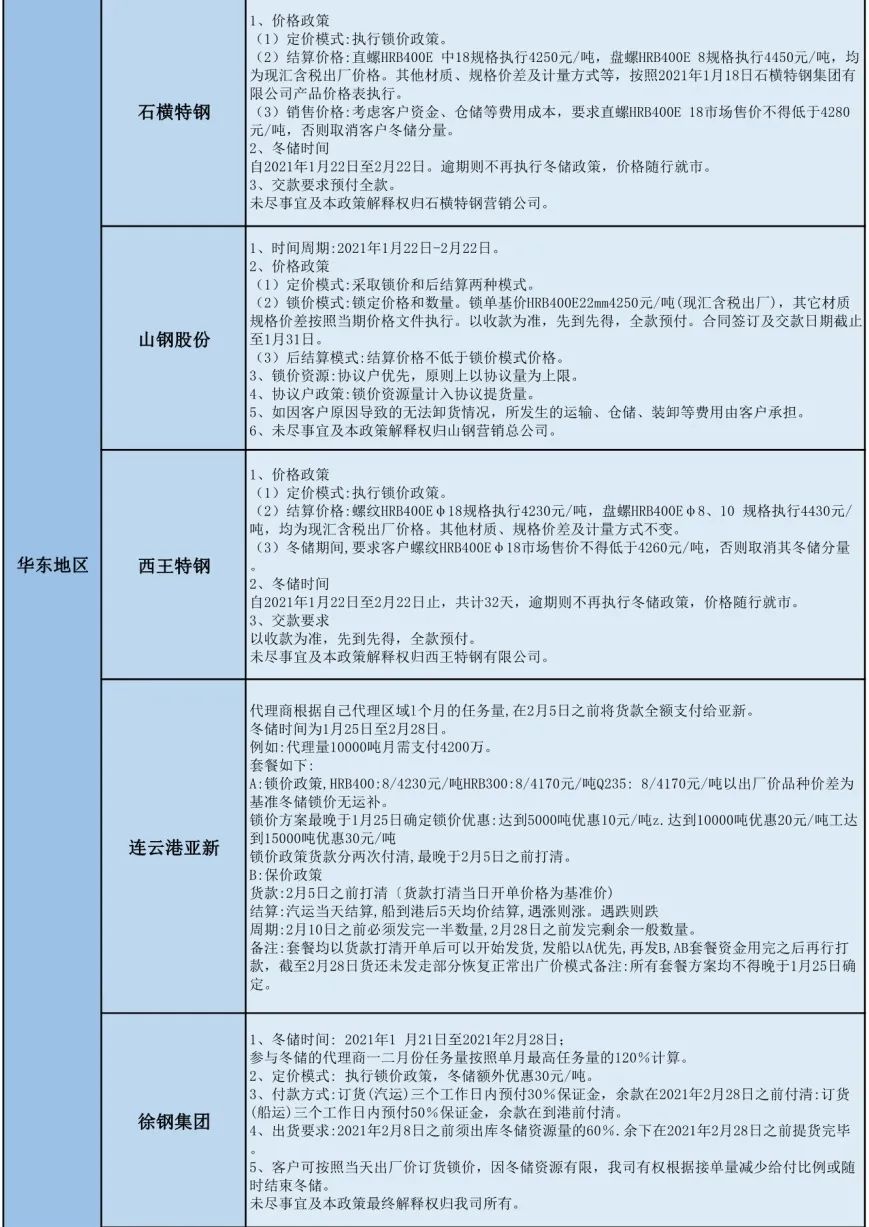 1、提貨量大于等≥5000噸,1月19日之前提報計劃并簽訂冬儲合同,1月22日之前付清全款,線盤與螺紋比例為3:7