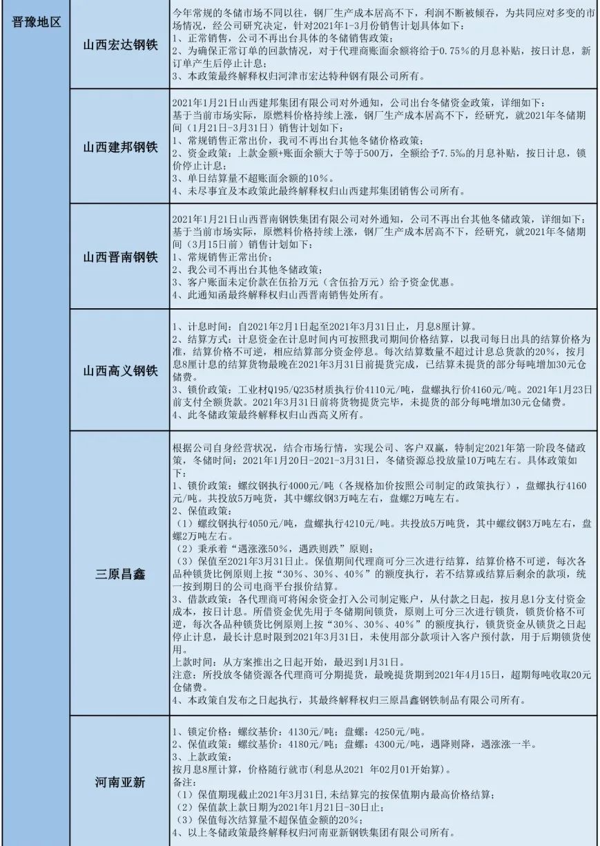 2021年,各地鋼廠冬儲政策已陸續(xù)出臺!