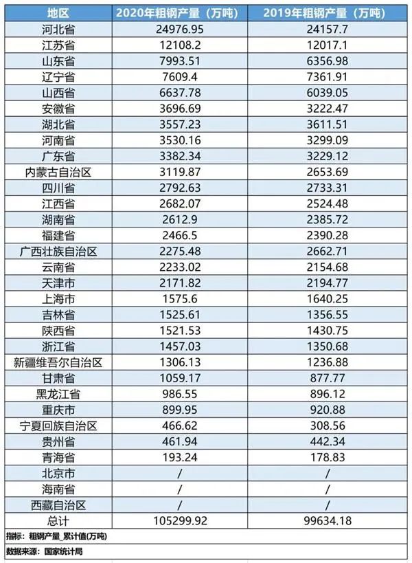 聚焦鋼市|2020年各省份粗鋼產量出爐!