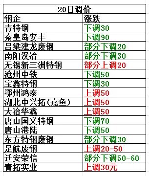 20日唐山廢鋼調價:重a3350-3400,一級破碎料3150-3200,鋼坯頭3420-3470,鋼板料3380-3400,鋼筋切頭3520-3570,模具鋼3420-3470,不含稅。
